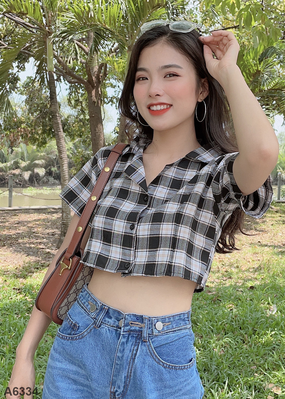 Áo croptop caro đen A6334