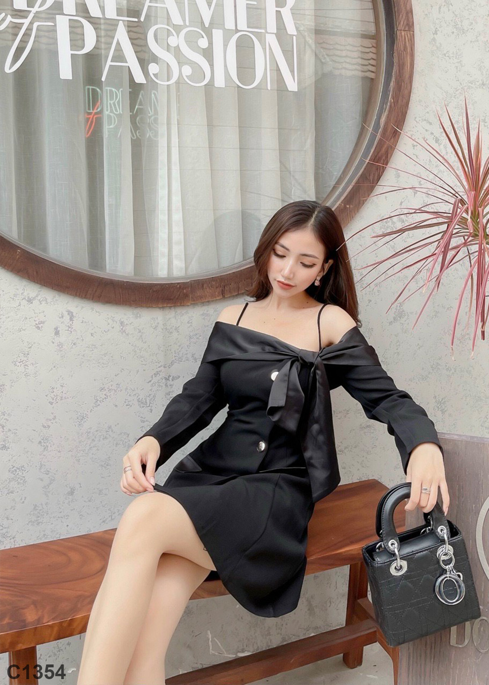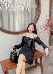 Đầm cột nơ voan đen C1354