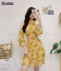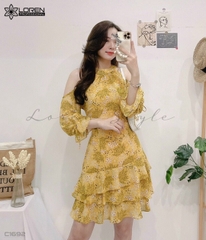 Đầm nhún hoa nhí khoét vai vàng C1692