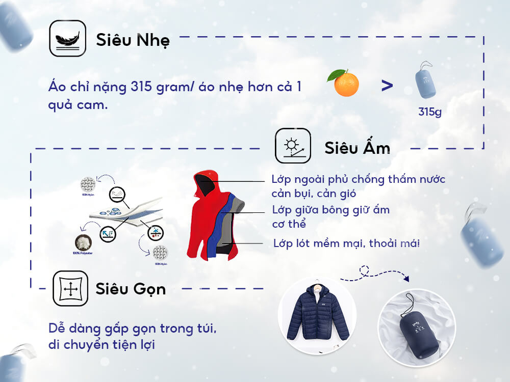 Thiết kế áo phao 3S - SIÊU NHẸ - SIÊU ẤM - SIÊU GỌN